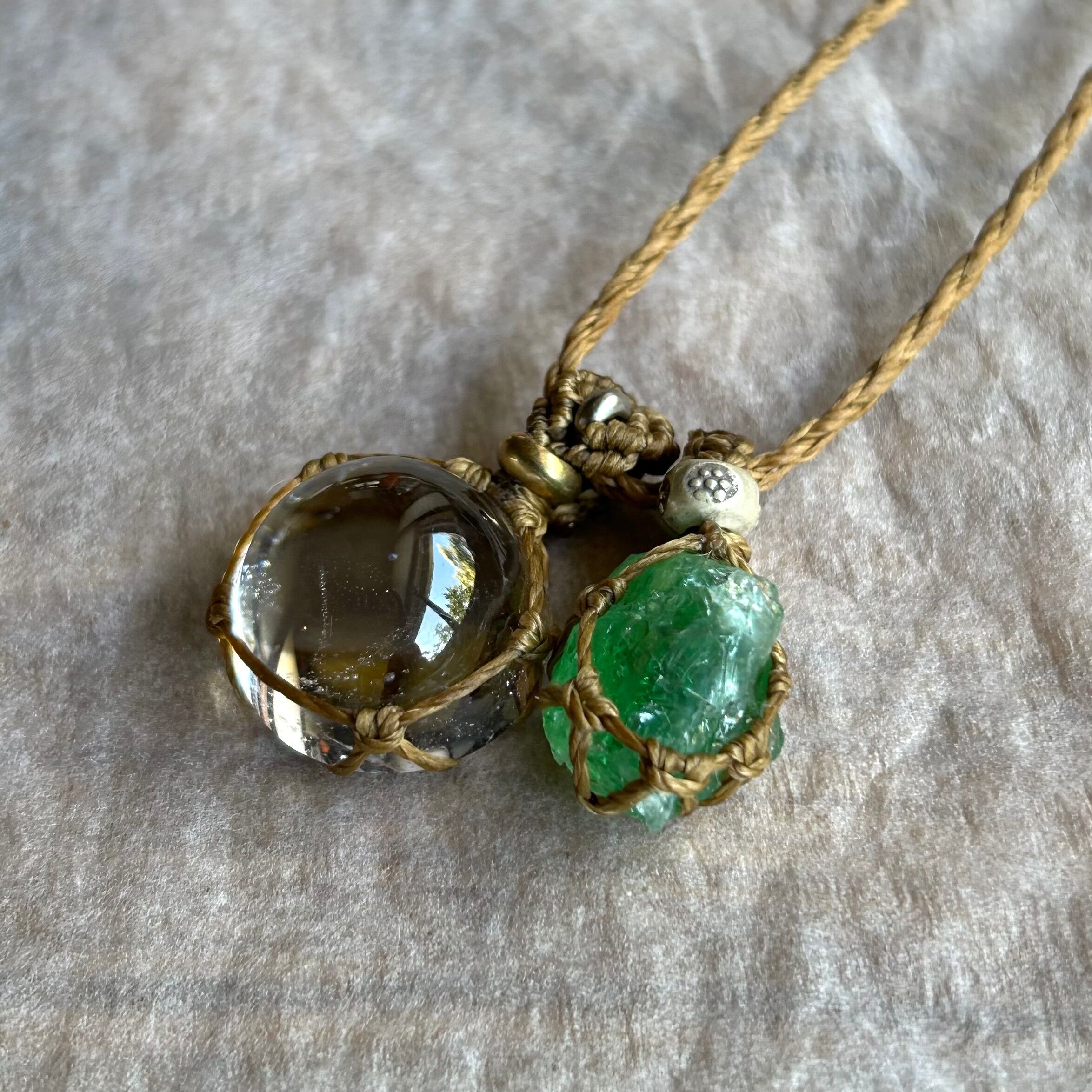 グロッシュラーガーネットの中でもめちゃくちゃ綺麗な原石です。マクラメ編みにちょうど良い大きさだったので、うるうるの水晶ルースが出来たらぜひ組み合わせてネックレスを作ろう、と密かにほくそ笑んでいました。
