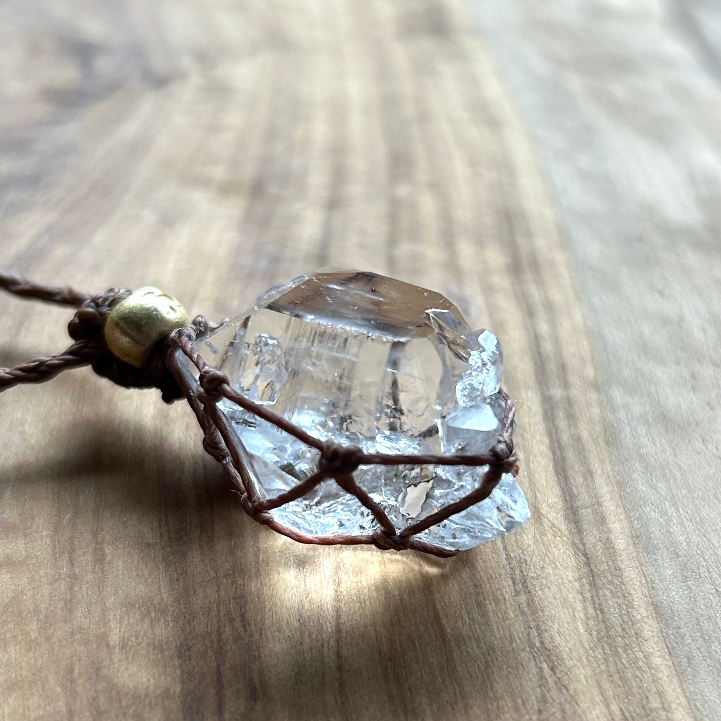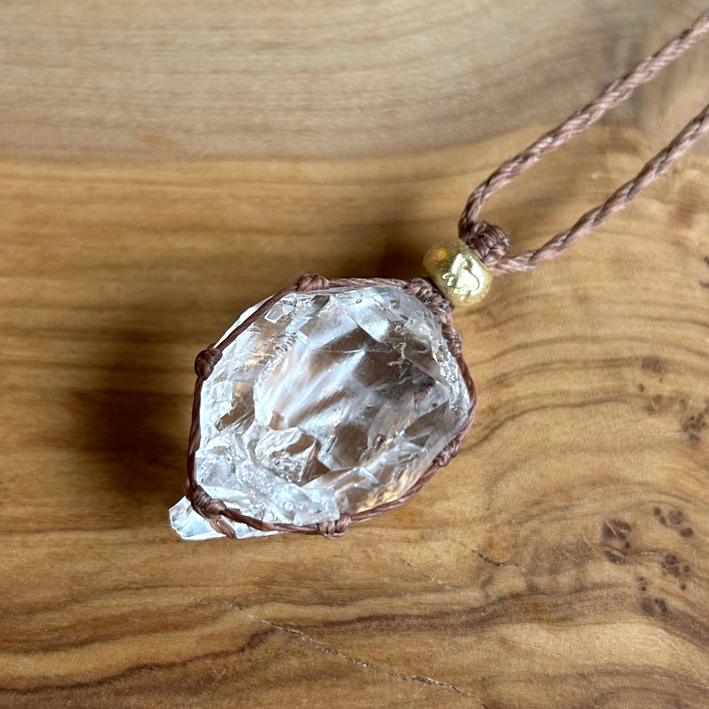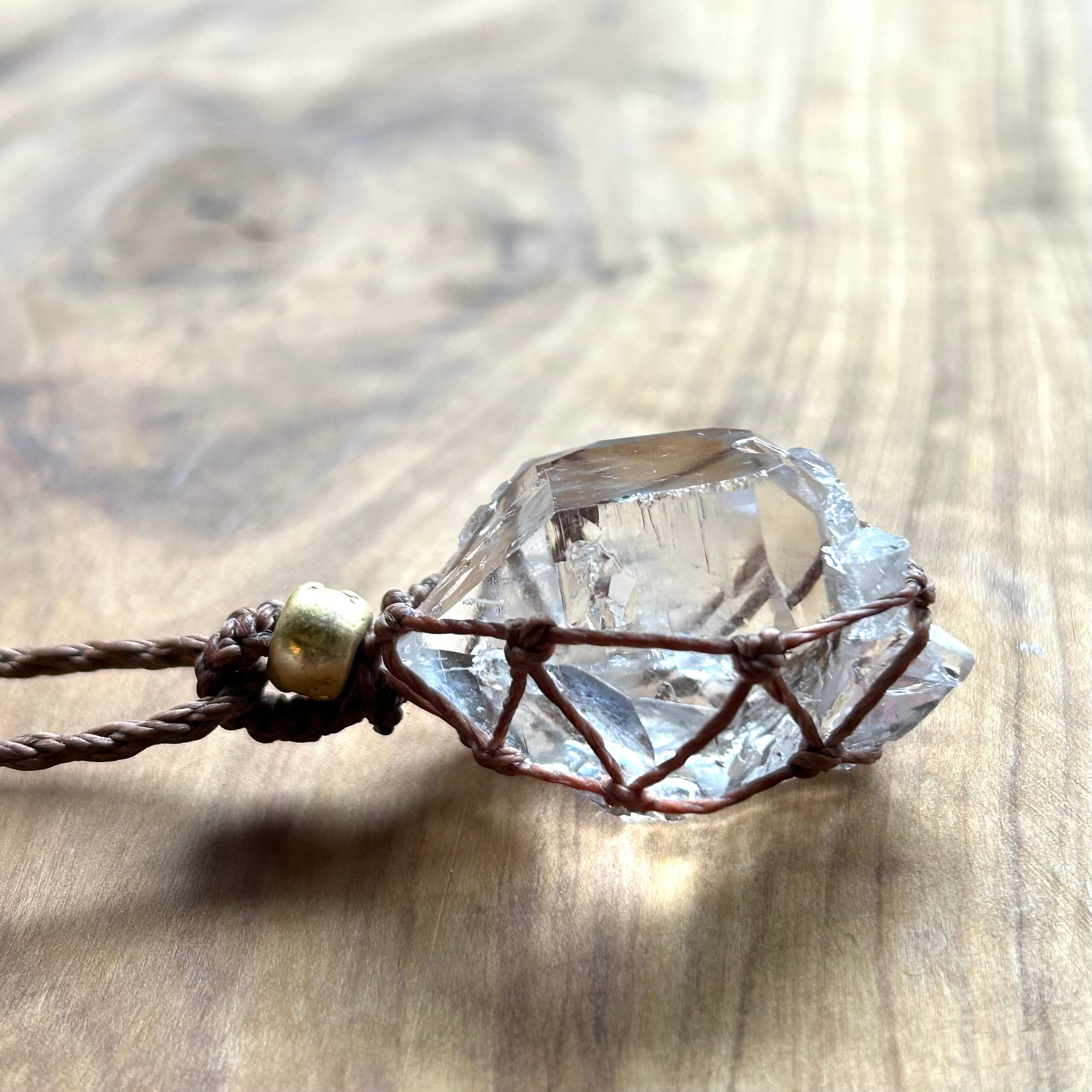 間違いなくコレクターズアイテムとなる希少さと美しさを兼ね備えた水晶をマクラメしました。