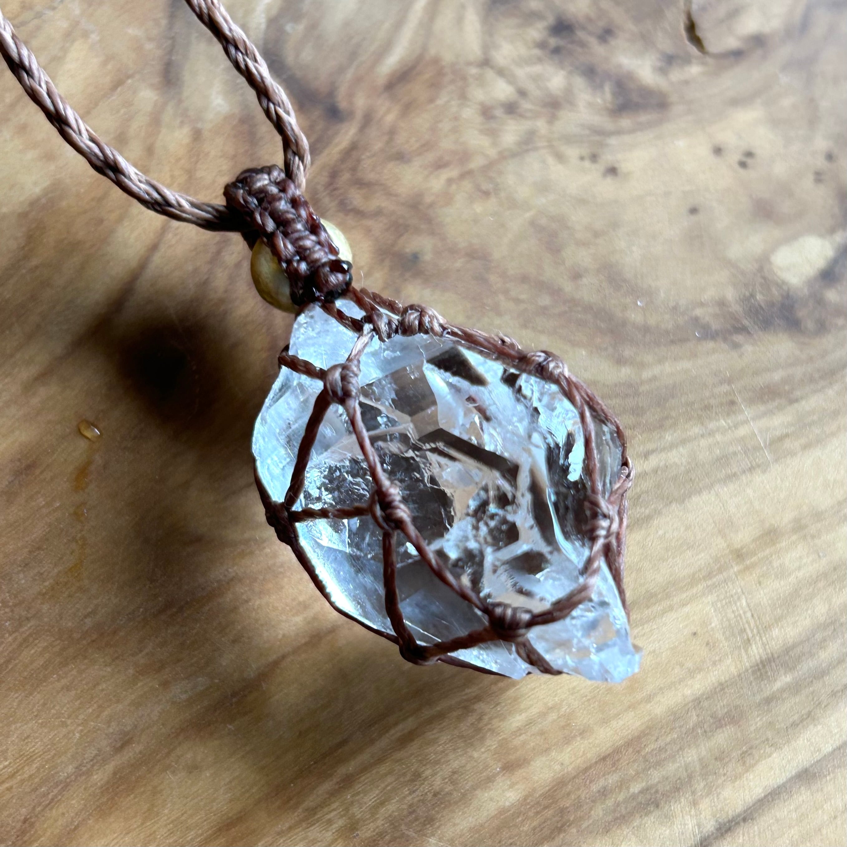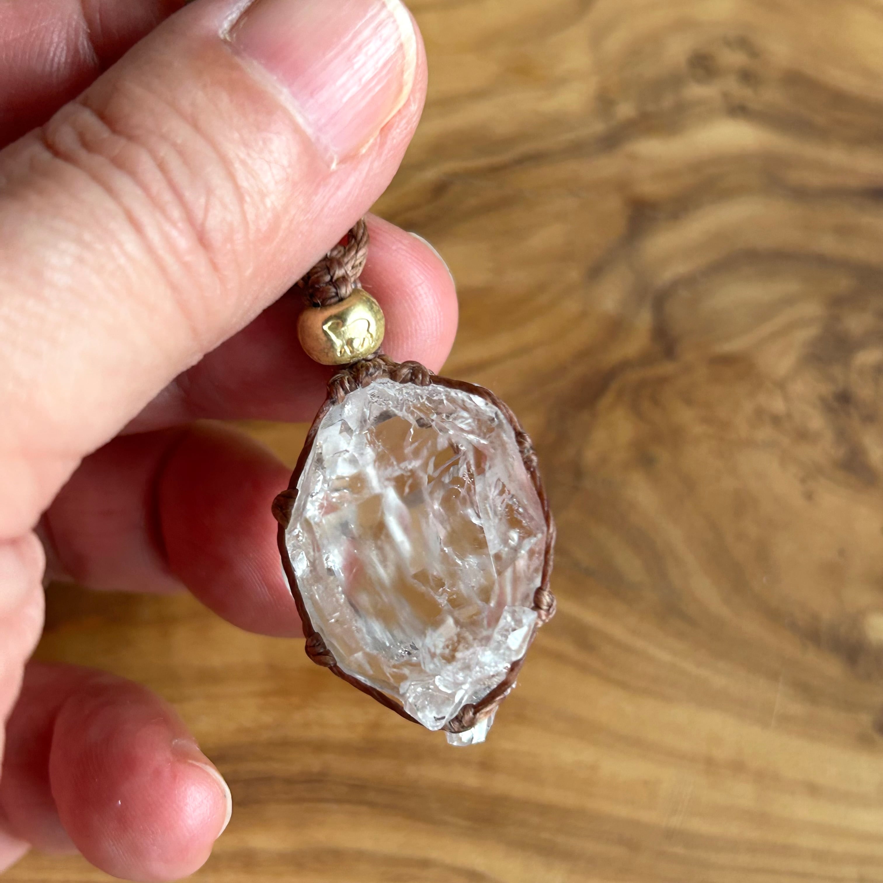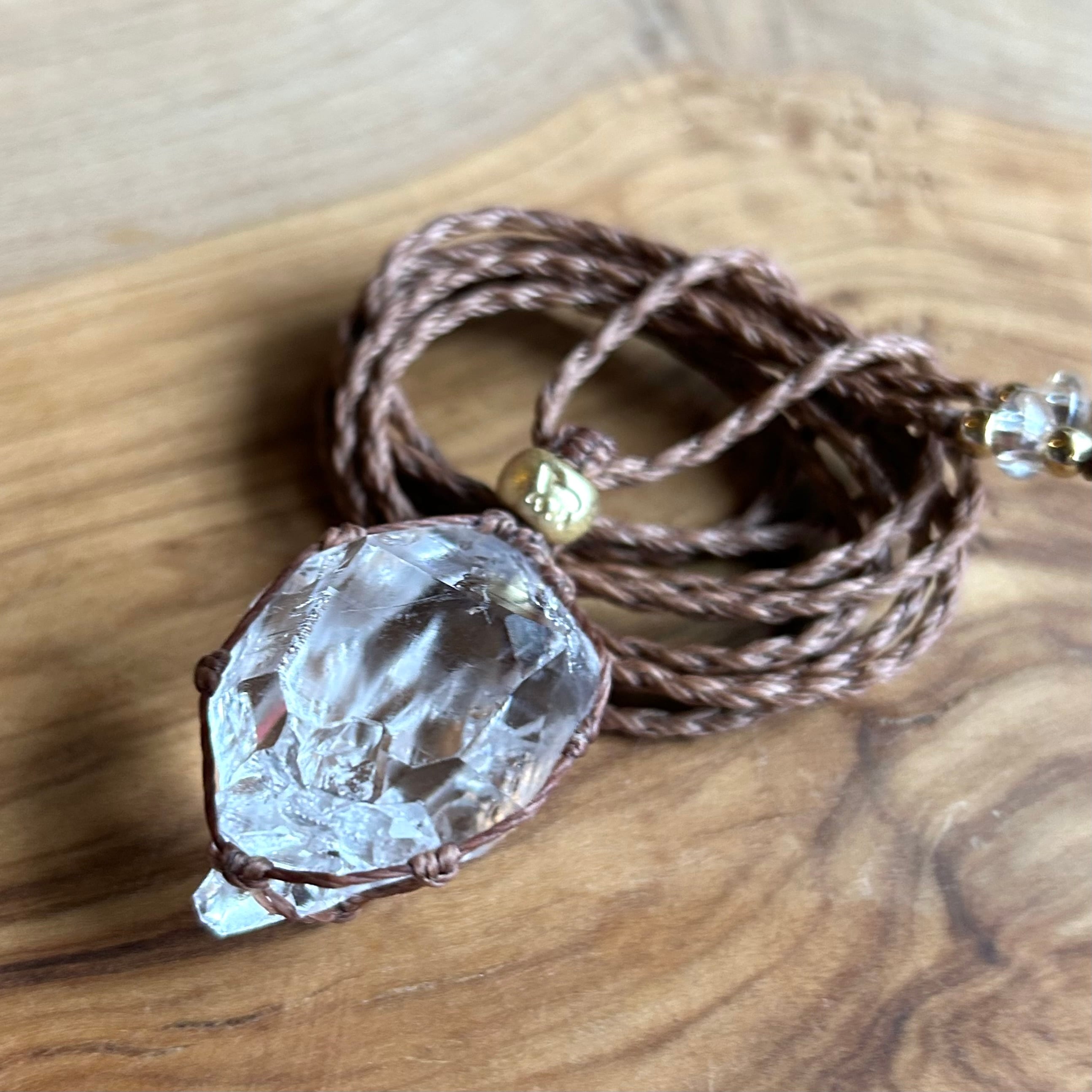 間違いなくコレクターズアイテムとなる希少さと美しさを兼ね備えた水晶をマクラメしました。