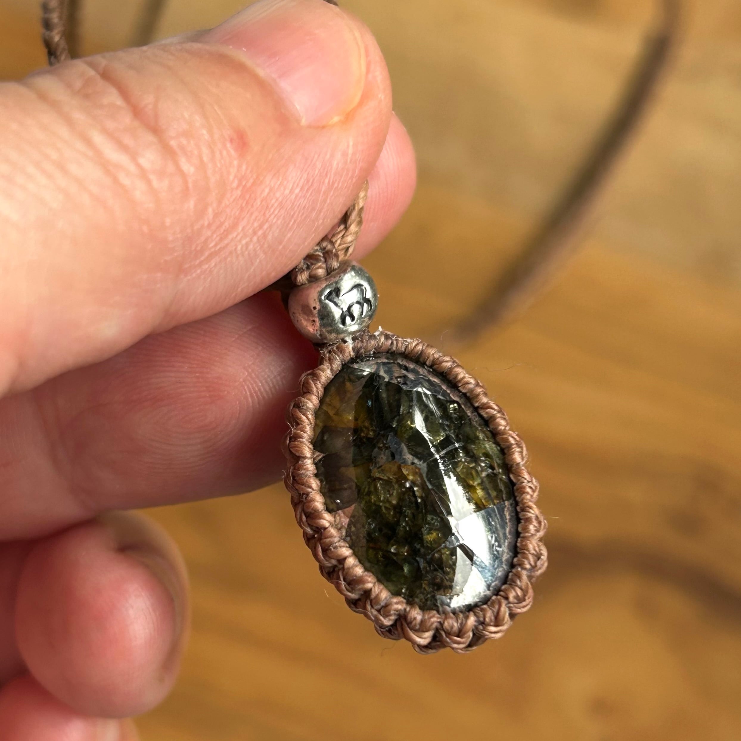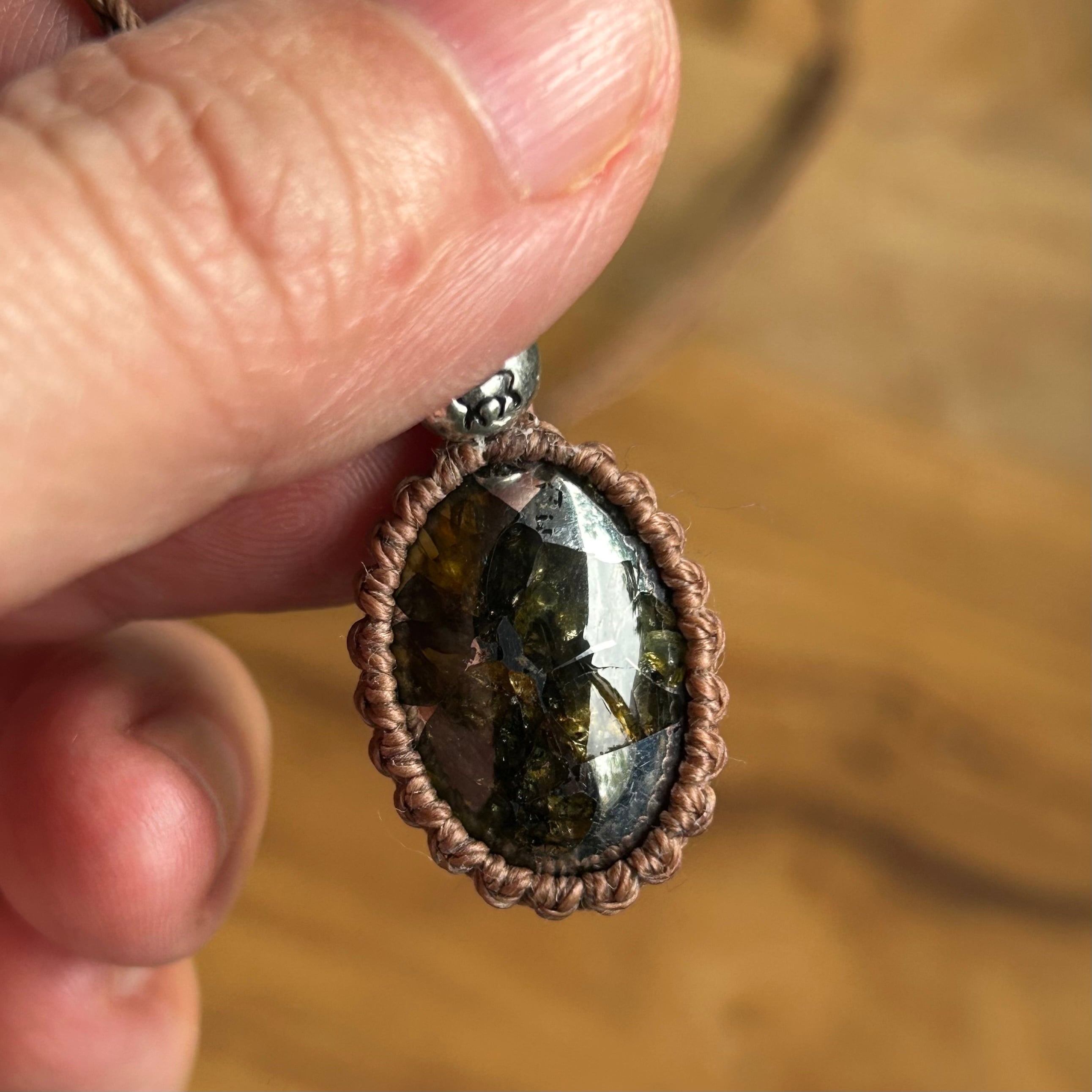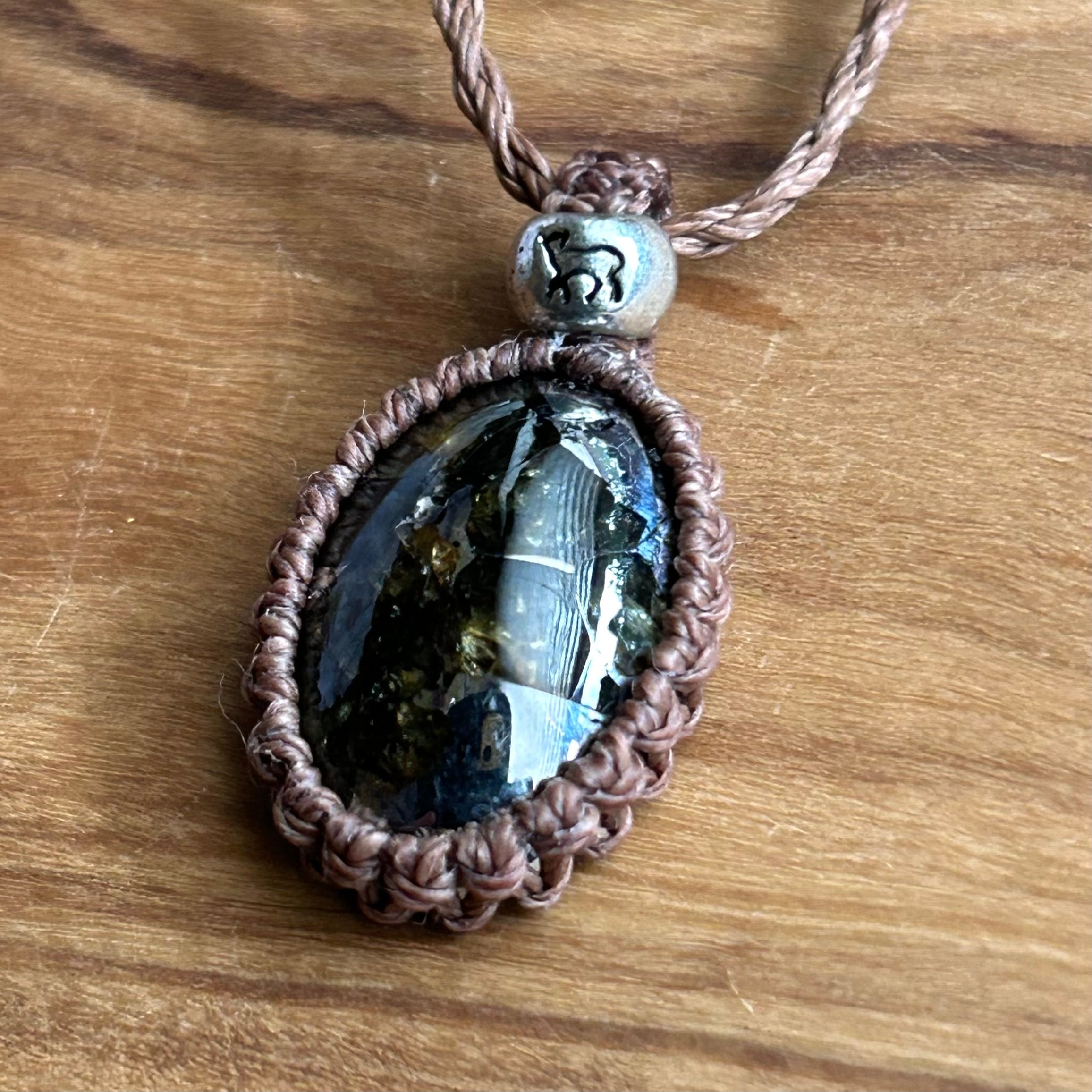 わたしもパラサイト隕石のマクラメネックレスを持っています。身につけていて気がついたのは、パラサイト隕石は金属的でクッキリ冴え冴えとした模様なので周囲に沈んだり同化することなく、どんな色や柄物の服に合わせても存在感が際立つということ。どこにもない個性的なネックレスとして大活躍してくれています。身につけているとよく知らない人から「そのネックレスは何ですか?」と声をかけられます。目を釘付けにする存在感があるのだと思います。この、極力他人に干渉しない東京砂漠でいきなり知らない人に質問するのはこの方もさぞかし勇気が必要だっただろうと思い、満面の笑みで「隕石ですー^ ^」と言いながら立ち去ります。あまりに予想外な答えすぎたら相手の方もリアクションに困るでしょうから笑笑。