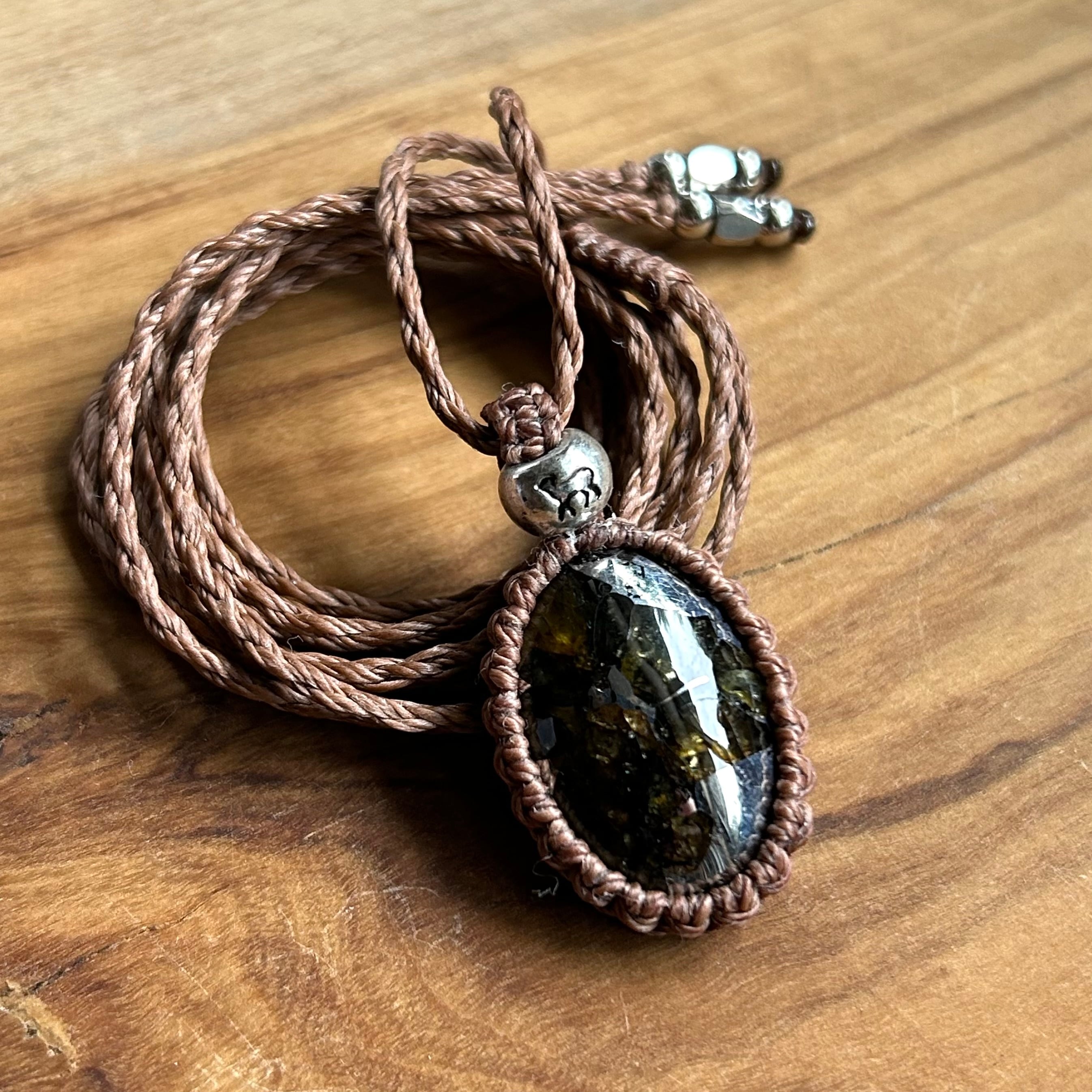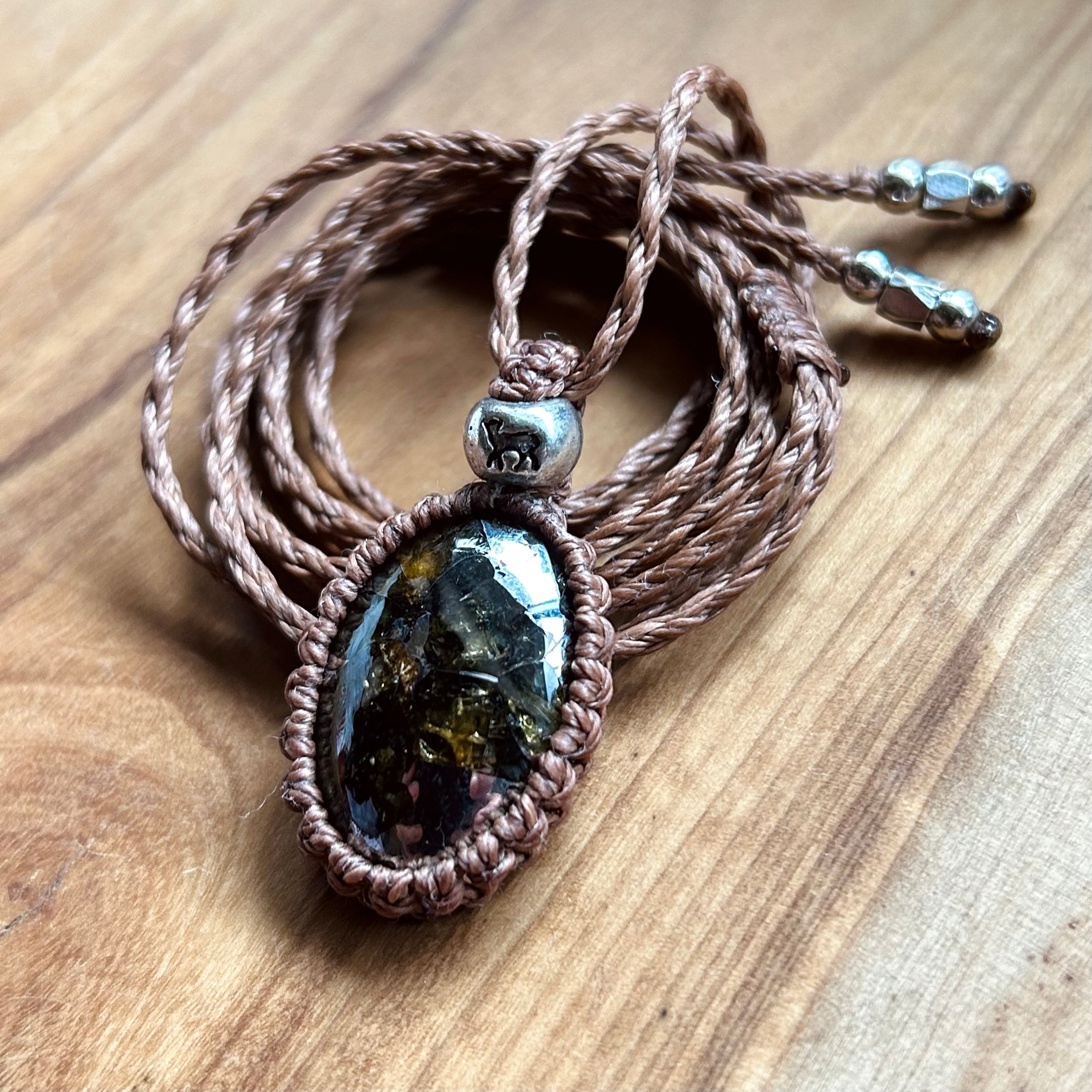 これまで金属質なパラサイトはグレーのコードで編んでいたのですが、この子は隕石の割に柔らかな美しさがあるように思ったのでブラウン系のコードで編んでみました。温かみがあってこれもなかなかいいんじゃないかと思います。