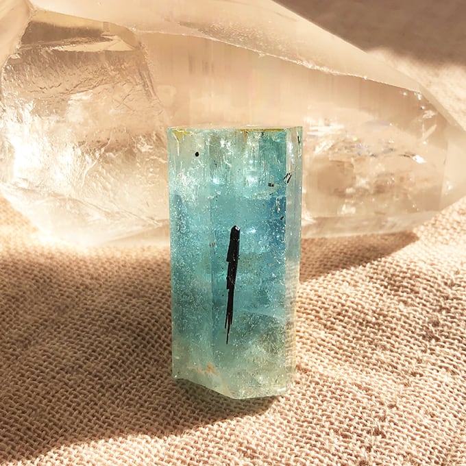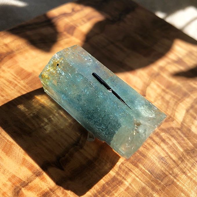 このアクアマリンの結晶を見たときは驚きました。その大きさと六角柱の美しさに。しかもナミビア産です!手に持った時のヴォリューム感がたまりません!