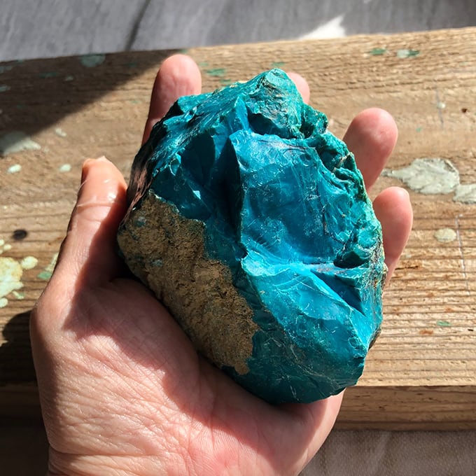 こんなに大きなクリソコラの原石はなかなか見ません。しかも碧い。