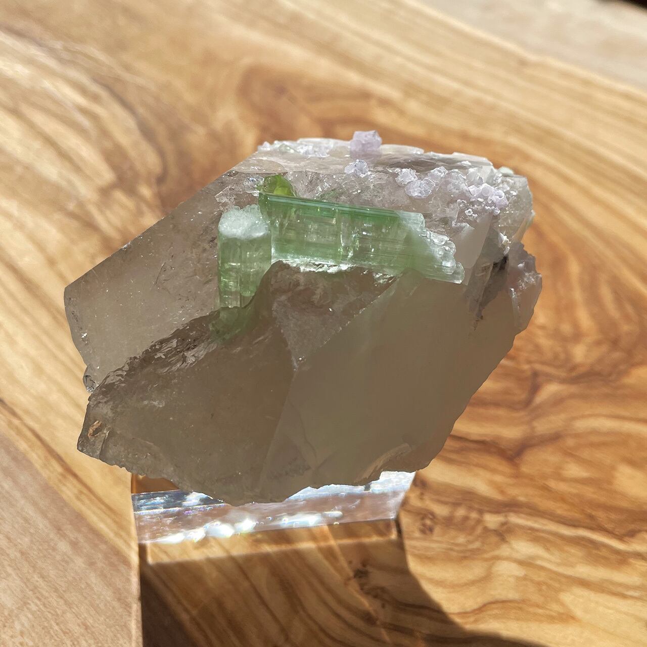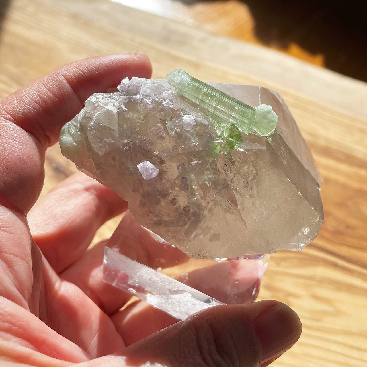 気さくなクォーツの上に明るいメロングリーンのトルマリンが乗っかっているんだもーん。